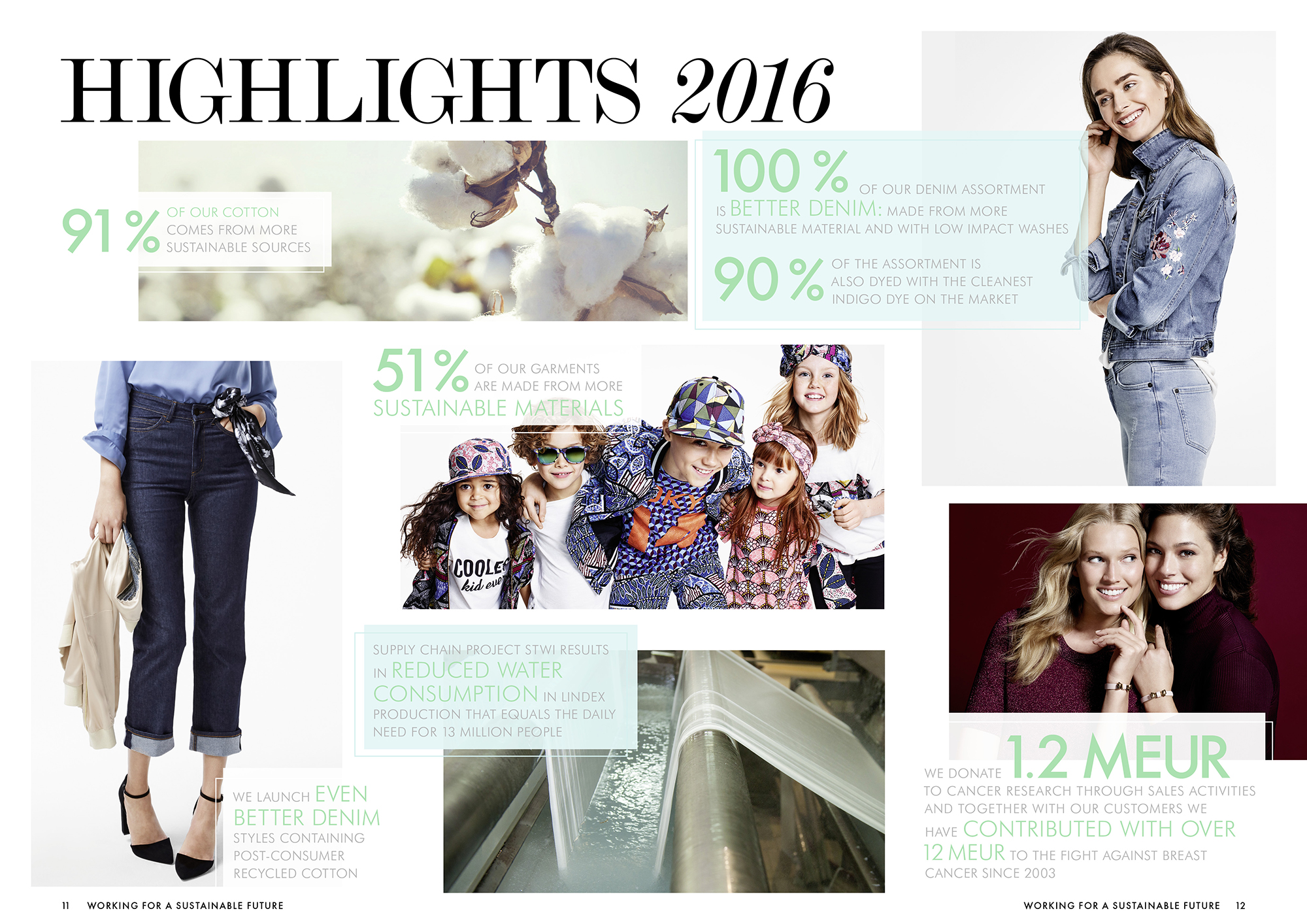 V roku 2016 sa podarilo vyvinúť udržateľnejší sortiment výrobkov z džínsoviny spoločnosti Lindex, pričom 100 % džínsoviny módnej spoločnosti teraz patrí do kategórie Better Denim, pretože sa vyrába z udržateľnejších materiálov a s udržateľnejšími procesmi prania. Takmer 90 % sortimentu odevov z džínsoviny sa zároveň farbí najčistejšou indigovou farbou na trhu. Táto farba predstavuje lepšie riešenie z hľadiska ochrany životného prostredia a zdravia ľudí, ktorí pracujú vo výrobe.